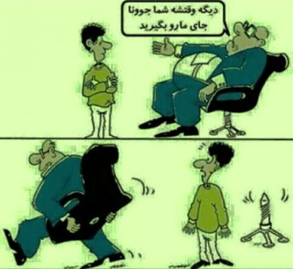 میگن بابا اینجا جهنم ایرانی هاست. یه روز قیر نیست، یه روز قیر هست ولی قیف نیست! یه روز هم که دو تاش هست یارو نمیاد سر کار، یه روز هم که همه چی جوره بخشنامه میاد قیر نریزین!!